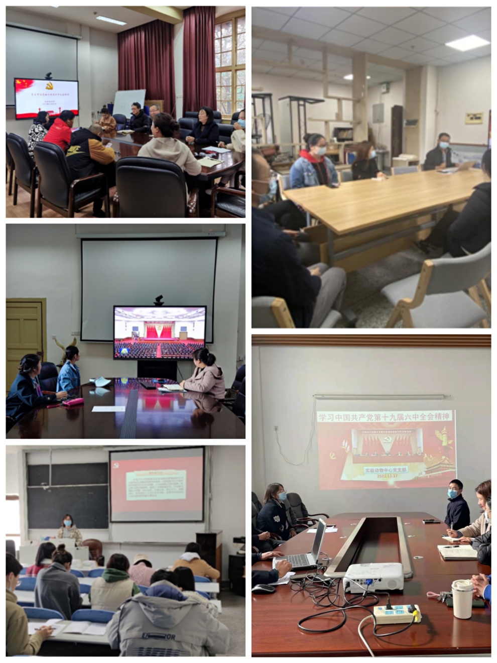 实验动物中心党支部开展学习贯彻党的十九届六中全会精神专题会,支部书记刘学旭领学了《中国共产党第十九届中央委员会第六次全体会议公报》,并就会议精神分享分享了心得体会。他表示,党的伟大成就鼓舞人心,历史使命催人奋进,中华民族在伟大复兴的新征程上必将再创新的辉煌。