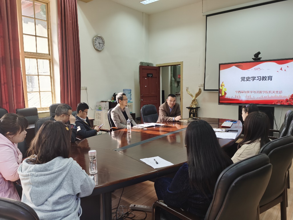 为进一步深入学习贯彻习近平总书记在党史学习教育动员大会上的重要讲话精神以及学校和学院党委党史学习教育有关要求,4月13日下午,学院机关党支部举行“学党史,强党性”党史专题学习会。学院机关党支部全体党员参与了本次学习,此次党史学习由学院副书记郭晓伟、机关党支部书记主任蒋宝晴和党政办党员樊梅三位同志主讲。