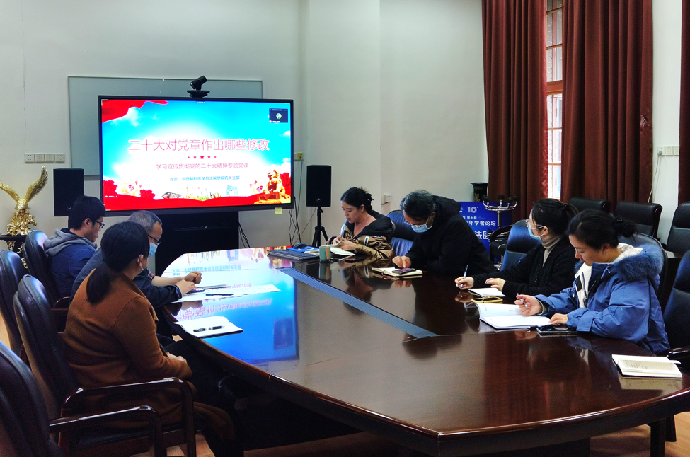 为深入学习贯彻党的二十大报告,12月1日下午,华西基础医学与法医学院机关支部在华西第五教学楼二会议室开展了“学习贯彻党的二十大精神专题党课”。机关支部的全体党员以线上线下结合的方式学习了本次党课。