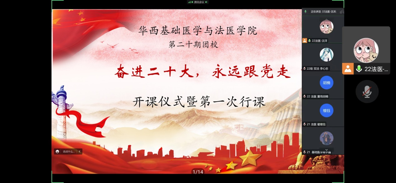 开课仪式开始,全体参会人员齐唱团歌,重温入团誓词,学习团校管理规则。董老师为团校开学典礼致辞。她介绍了开展团校的目的与其深刻意义,并要求同学们认真学习党的二十大精神,提高思想认识,怀抱梦想,脚踏实地,坚定不移跟党走。董老师强调,共青团员作为党的后备军,更应该立大志,担大任,将红色基因融入到实际行动中,成为新时代好青年。