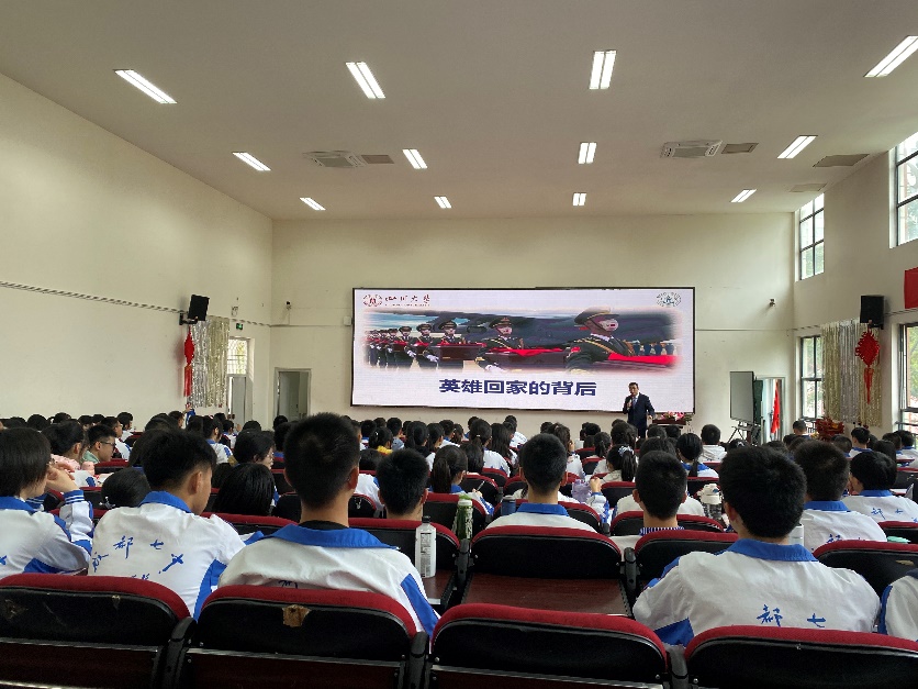 11月7日下午2:30,我院教学副院长梁伟波教授应邀出席成都七中八一学校的立志成才集中教育活动,做了题为《英雄回家的背后》的讲座,200余名师生参加了活动,活动由成都七中八一学校何国章老师主持。