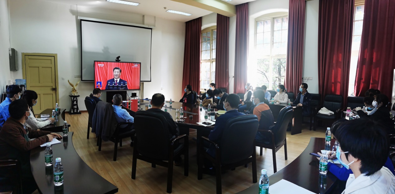 我院全体在家院领导、两委委员、党支部书记、师生代表30余人在华西第五教学楼二会议室集中收看了大会直播盛况,其他师生员工在学院党支部、二级单位、团委的组织下采用电视、广播、网络、手机客户端等多种形式积极踊跃收看收听直播,认真学习讨论党的二十大报告。