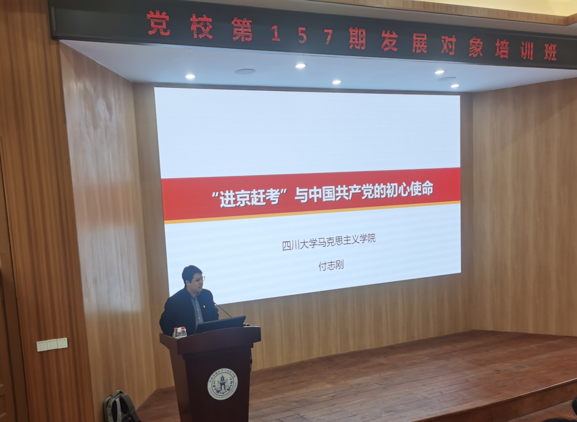 付志刚老师围绕《“进京赶考”与中国共产党的初心使命》作主题报告。他从刚解放上海军纪严明和毛泽东同志的进京赶考,党的执政追求和执政行为准则,阐述建党初心和革命价值取向。以一大党员历史发展走向为例,讲述了经历革命考验,形成以开天辟地的首创精神、坚定理想的奋斗精神和忠诚为民的奉献精神为核心内涵的红船精神,以几位历史人物如黄克功与张灵甫事件为例,讲述党的纪律和自我革命。强调要牢记红色政权是从哪里来的、新中国是怎么建立起来的,不忘历史、不忘初心,牢记使命,筑牢信仰之基。