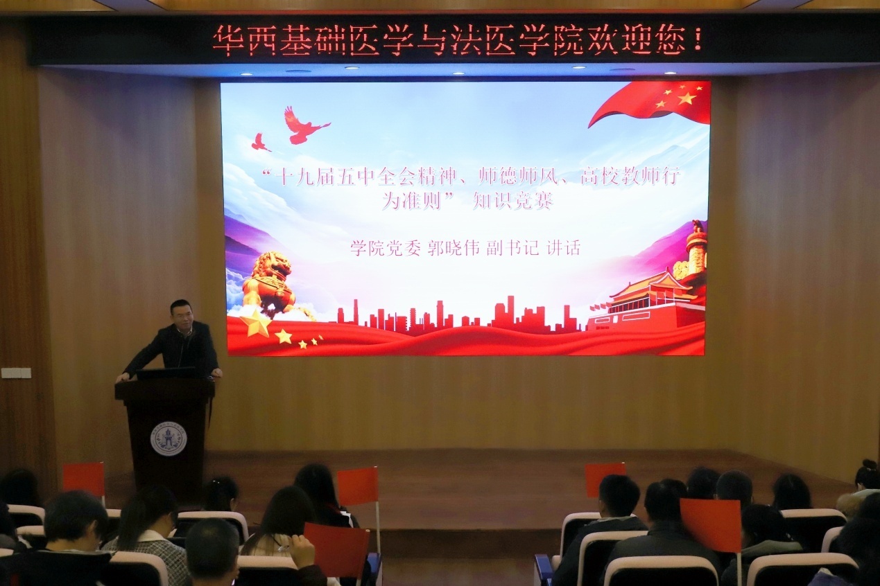 活动于12月4日中午在华西校区五教报告厅举行,学院党委副书记、纪委书记郭晓伟出席活动并发表讲话。活动青年教师李浇老师主持。学院共十一个组、近60名教职工参加了此次活动。