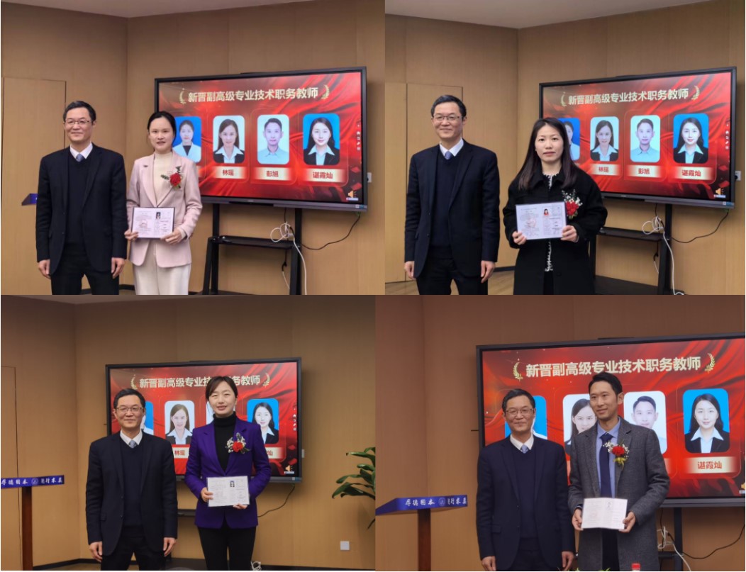 新晋副高教师代表林瑶作交流发言,对学校、学院在成长道路上的支持和鼓励表示感谢,并分享了自己工作和成长的经验,表示未来将在新的起点上,将个人发展与学校、学院发展融合起来,坚定理想信念,加强师德修养,认真教学、潜心科研、传道授业,以实际行动践行为党育人、为国育才的初心和使命。