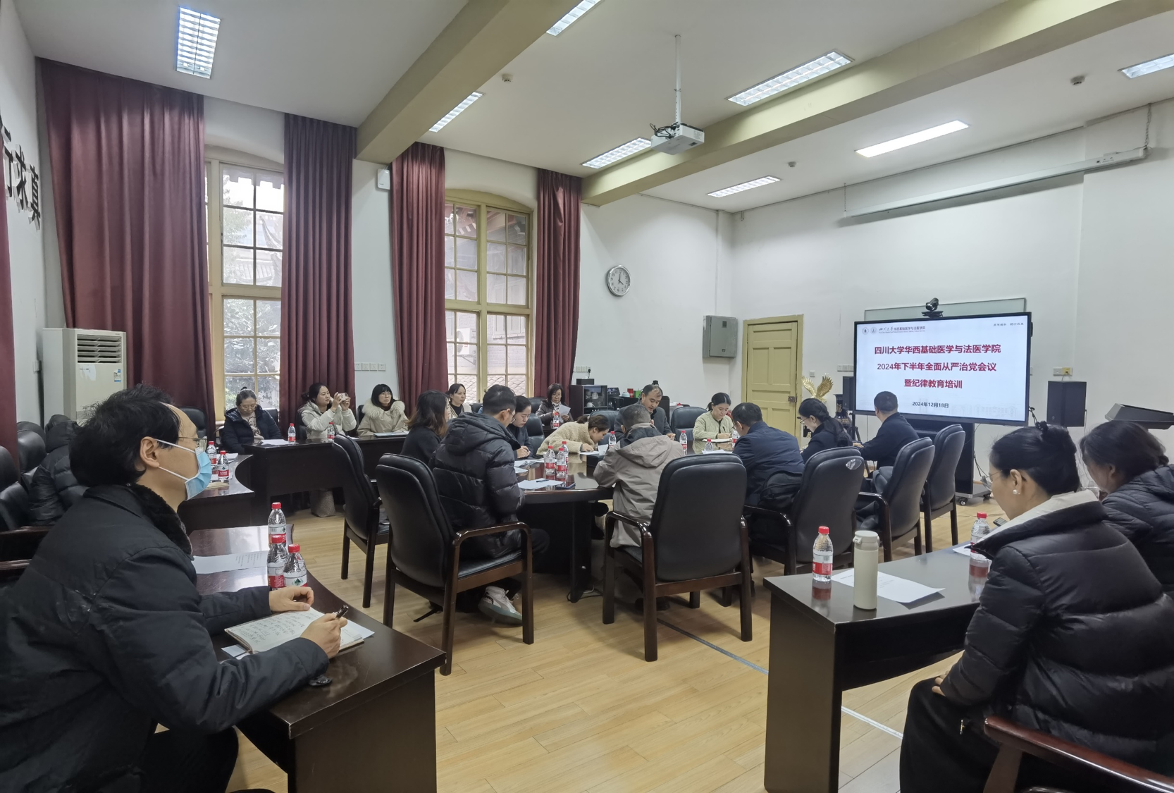 为持续推进党纪学习教育走深走实,12月18日下午,学院在华西校区第五教学楼第二会议室召开2024年下半年全面从严治党会议暨纪律教育培训,学院党委委员、纪委委员、教研室主任、支部书记、纪检委员、专职组织员、科级干部、党政办工作人员参加会议。会议由学院党委副书记兼纪委书记、副院长罗海玻主持。