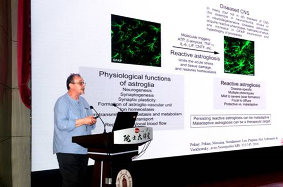 Prof. Alexei vividly introduced the relationship between nerve cells and glial cells, and the origin and development of glial cells. Additionally, he illuminated the pathological changes of various types of brain cells (including nerve cells, glial cells and astrocytes)involved in different brain diseases, especially the Alzheimer’s disease. Prof. Alexei popularized the knowledge on cellular neurophysiology from small nerve cells to Alzheimer’s disease. His experience in spired numerous researchers in the field of neuroscience, and had a crucial guiding significance to our scientific career. The faculties and students discussed enthusiastically with Prof.Alexeiabout the signal transmission in nerve cells and glial cells.