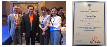 On October 20-21, 2019, professor Linchuan Liao, the director of the forensic toxicology department, doctoral student Hui Jian and master student Ranran Zhang of forensic genetics in our school attended the 4th Conference of Silk Road Forensic Consortium (SRFC)in Kunming. More than 20 experts and professors in the field of forensic science from China, the United States, the United Kingdom, the Republic of Korea, Russia, Denmark, Poland, India and other countries attended the conference. The conference was presided over by Dr. Zhe Zhang, the secretary-general of the consortium.