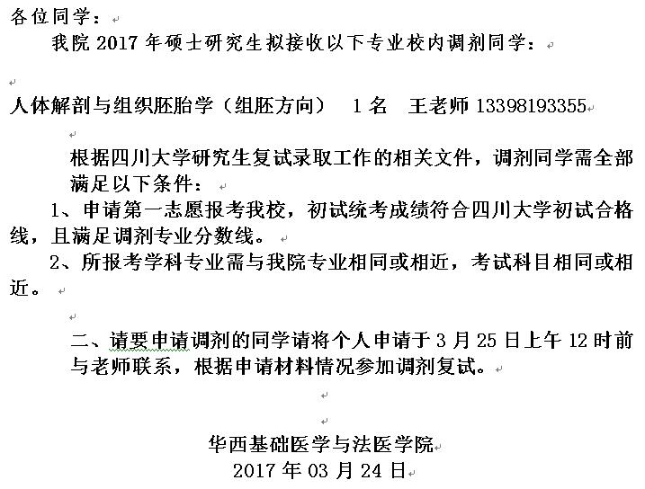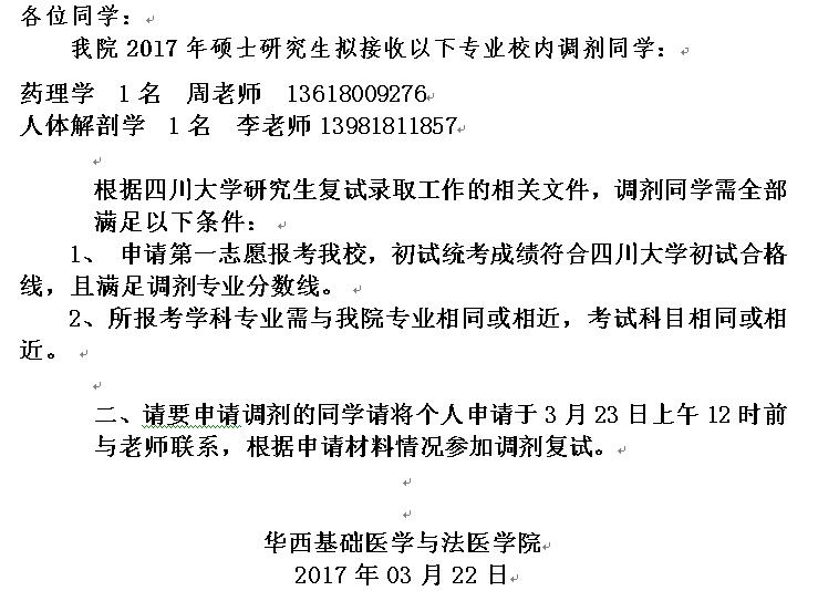 亲爱的同学: 欢迎报考英国上市公司365华西基础医学与法医学院!根据《英国上市公司365研究生复试录取工作实施办法》(川大研【2012】94号)有关规定,经学院研究生招生工作小组研究,2017年我院硕士研究生招生复试安排如下: 一、 ...