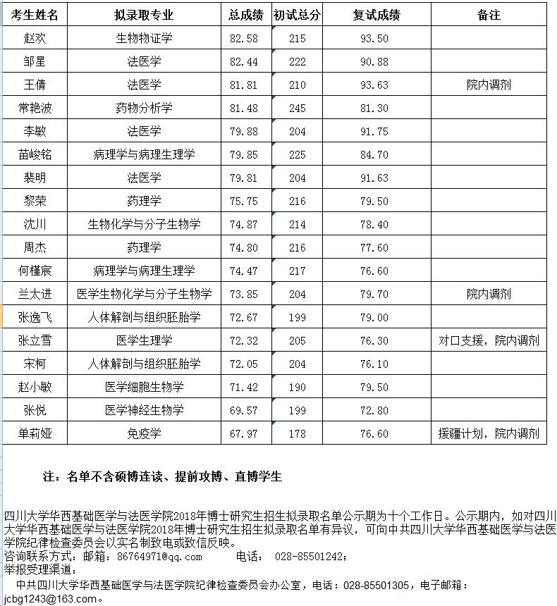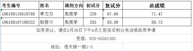本着“坚持标准、择优录取”的原则,按照华西基础医学与法医学院招生指标和录取情况,我院目前可接收1名校内调剂生。