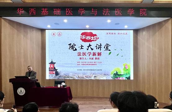 11月28日19:30,中国工程院院士丛斌教授应邀在华西五教报告厅为我院全体师生带来了题为“法医学新解”的精彩学术讲座,大讲堂吸引了200余人参加。我院党委书记李华教授、院长李昌龙教授、副院长梁伟波教授、副院长罗海玻教授出席讲座,大讲堂由李昌龙教授主持。李昌龙主持大讲堂李昌龙首先代表学院致欢迎辞,对丛斌院士的卓越成就和对法医学科建设所作出的重要贡献进行了简要介绍,他期待在场师生珍惜此次难得的学习机会,认真...